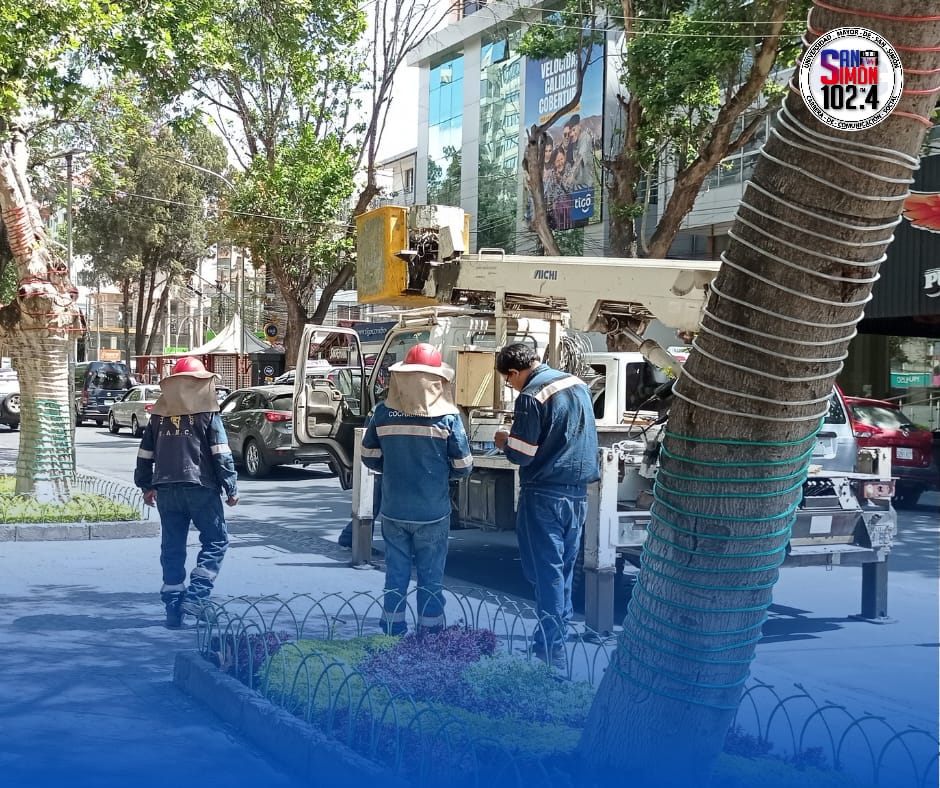 El Gobierno Autónomo Municipal de Cochabamba a través de sus funcionarios públicos dio inicio a la instalación de luces navideñas en los principales espacios de la ciudad como la Plaza Colón y El Prado preparando el ambiente festivo para la temporada de navidad.