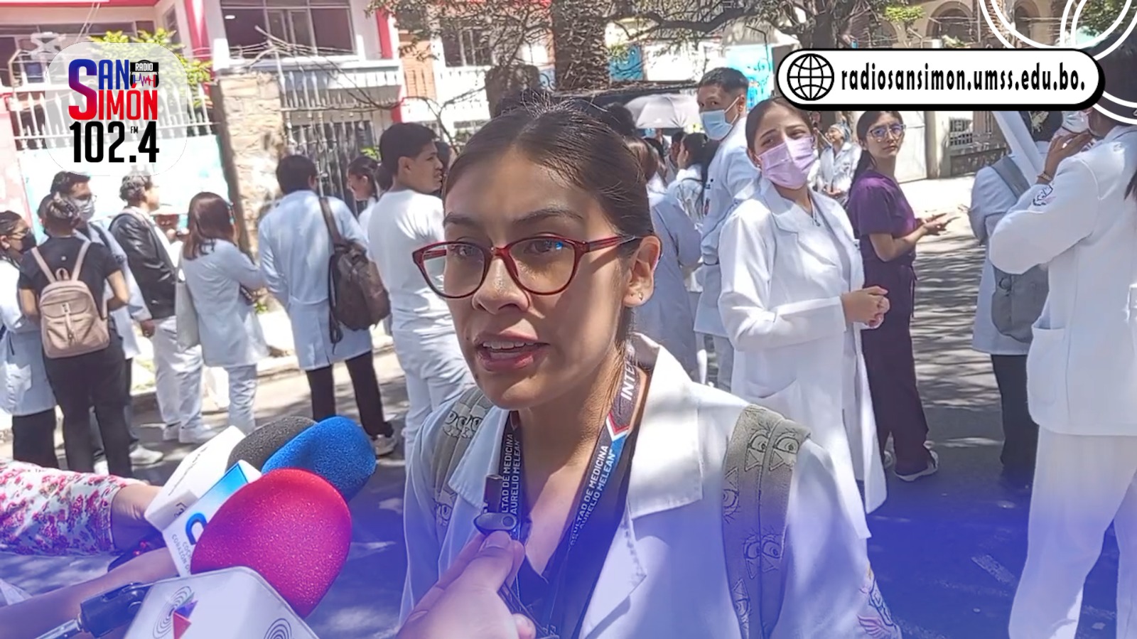 Estudiantes de la Facultad de Medicina de la UMSS realizaron una protesta exigiendo justicia por la muerte de una de sus compañeras, quien habría fallecido a causa de rabia humana en el Trópico de Cochabamba.